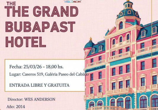 25/03/26 – 18,00 hs. CINE ARTE EN LA BIBLIOTECA –"GRAN HOTEL BUDAPEST" The Grand Budapest Hotel, 2014) es una comedia de aventuras dirigida por Wes Anderson, considerada por muchos críticos y seguidores como su obra maestra. La película es famosa por su estética visual meticulosa, caracterizada por una simetría perfecta, paletas de colores pastel y una narrativa en capas (una historia dentro de otra). Director: Wes Anderson. Reparto Principal: Ralph Fiennes, Tony Revolori y Saoirse Ronan.