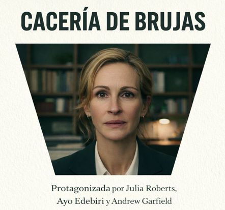 "CACERÍA DE BRUJAS" protagonizada por Julia Roberts, Ayo Edebiri y Andrew Garfield. Es un drama de 2025. Argumento: Una profesora universitaria que se encuentra en una encrucijada personal y profesional cuando una estudiante destacada presenta una acusación contra uno de sus colegas, y un oscuro secreto de su propio pasado amenaza con salir a la luz.